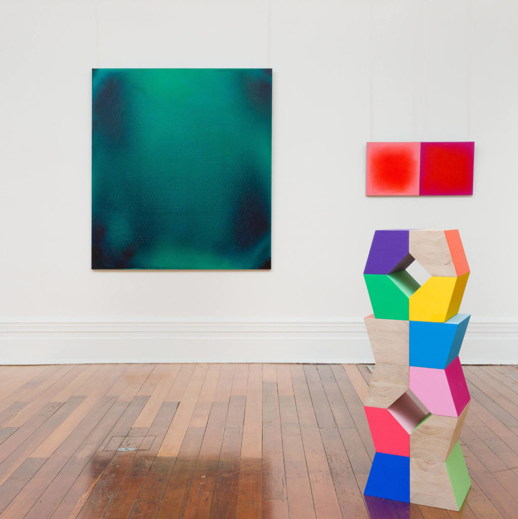 Saad and Vlavianos have long been involved in an informal dialogue about the ways in which their respective practices engage with the notion of visual echoes or resonances. Both artists share similar inherited histories, including the experiences of displacement, post-memory, migration and renewal. These themes permeate their work, not as direct polemics but through discreet visual avenues that include colour relationships, the arrangement of space, or how motifs, including elements such as line, and structure may be thought of and used. Within this framework, their practices are driven by a dialetic relationship between an inherited visual vocabulary and new possibilities afforded by the language and processes of abstraction. As such, colour for example, is not only a formal element in their work but also a link to memory, cultural practices and place. This multifaceted approach to formal elements in sculpture and painting is what Saad and Vlavianos identify as ‘a deep visual echo or resonance’.
