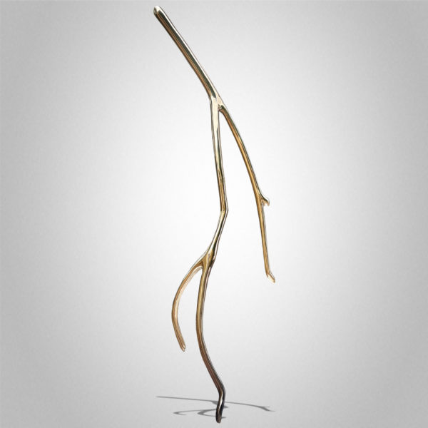 For over 28 years, Peter Syndicas has crafted abstract figurative sculptures inspired by the intricate patterns of plant life. His artistic journey began with a chance discovery of a simple twig that resembled an abstract human form, sparking an ongoing exploration of the figurative in organic fractals. Twigs—fragile and shaped by the elements—served as the foundation for his larger works, which are translated into bronze, steel, and stone, offering a striking contrast to their natural delicacy.