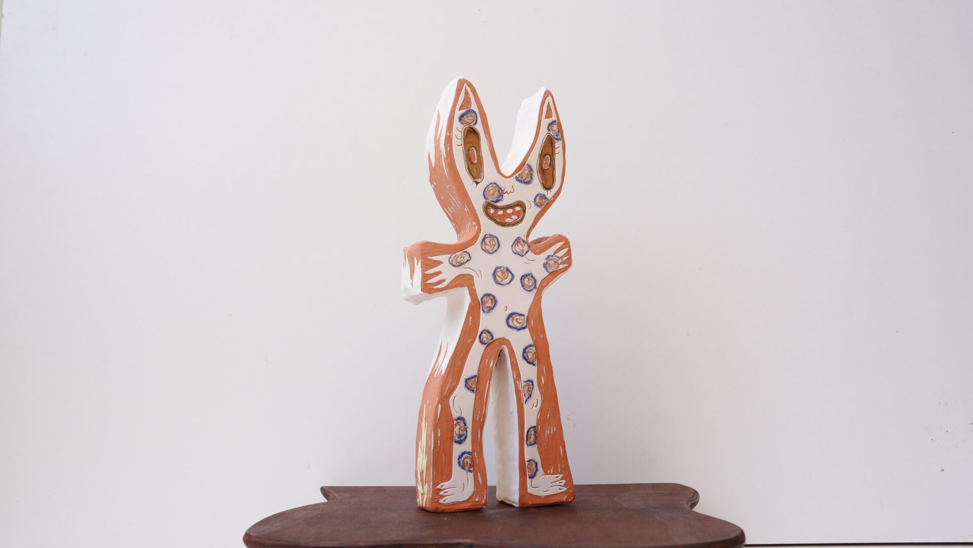 Terracotta clay, earthenware slip, underglaze crayon, glaze, platinum lustre