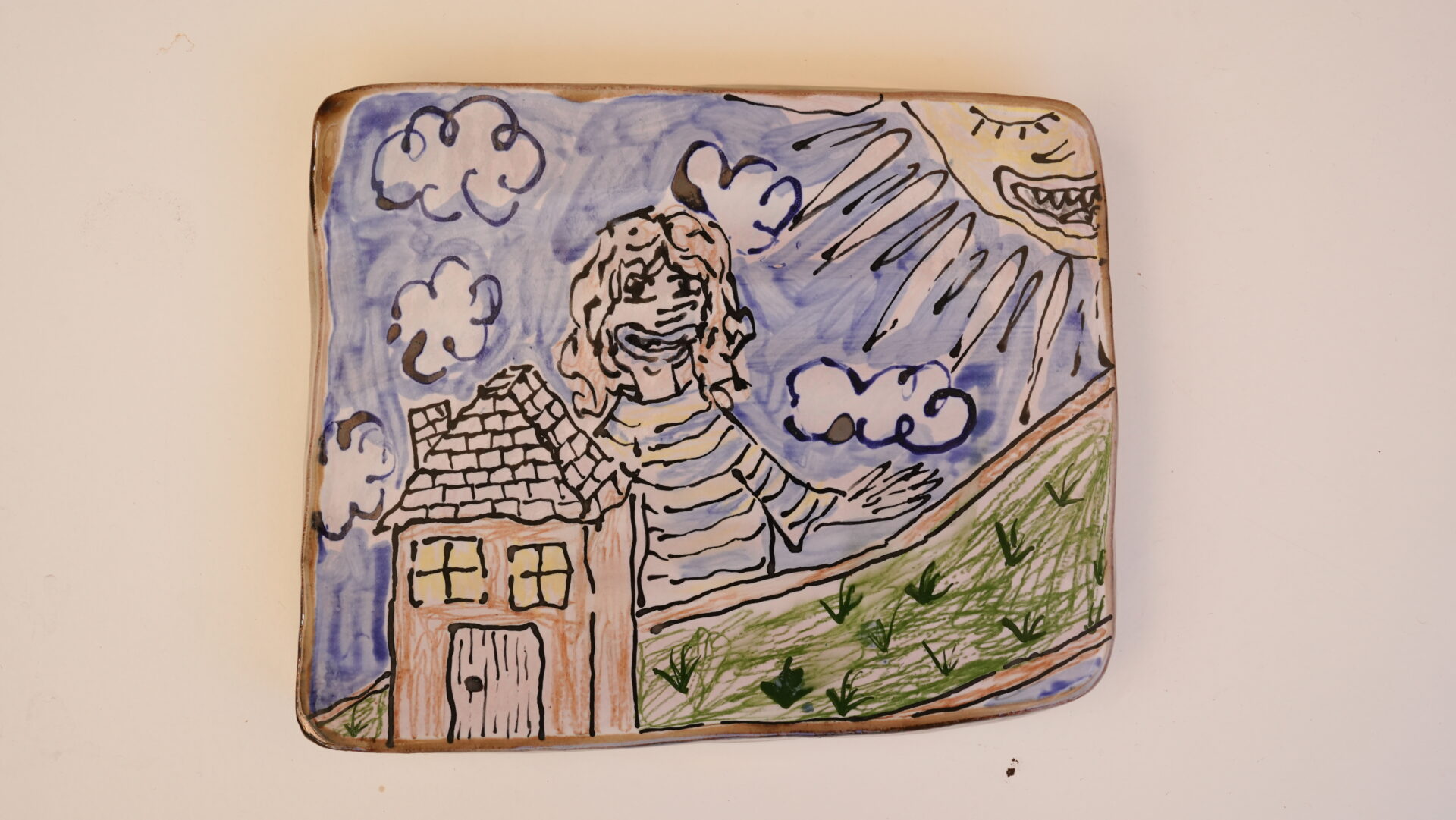 Raku clay, glaze, underglaze crayons, underglaze, oxides